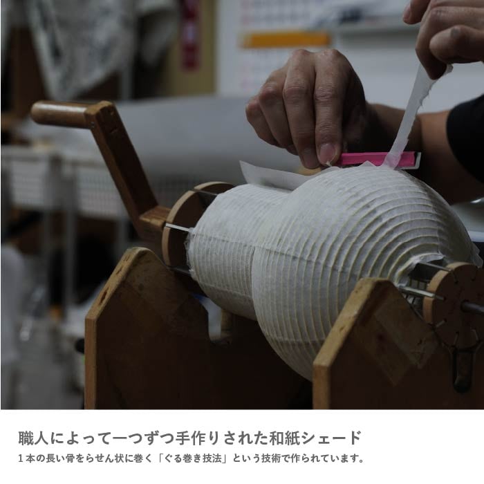 通常のちょうちんと比べて小ぶりなデザインになっており、繊細な作業が要求されるため、海外製ではなく日本製にこだわりました。 ちょうちん作りに150年の歴史を持つ鈴木茂兵衛商店に製造を依頼し、ディテールにとことんこだわった製品に仕上げていただきました。 boboriは商品名の由来でもある“ぼんぼり”をイメージしたフォルムで、インテリアのアクセントになります。 このちょうちんの形状により、光をランプの上方向だけでなくテーブル面にも届けます。 ちょうちんの最大の特徴でもある“畳める”という機能を最大限に活かせるように、お客様自身で組み立てを楽しめるように設計しました。ちょうちんを支えている支柱と持ち手を取り外すことでぐにゃぐにゃと形を変えることもできます。 支柱を取り外した状態でちょうちんならではの面白いカタチでの点灯も可能です。 ※和紙のため、支柱を外すと長時間の形状保持ができない場合があります。取り扱いには十分ご注意ください。