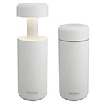 ウォターボトルのようなユニークなデザインのリチウムイオン電池付ポータブルライトです。ランプのヘッドを軽く押すと光が優しくゆっくりと広がります。タッチセンサーでスイッチのオンオフ、無段階で調光ができ、2種類の光色を選択可能です。