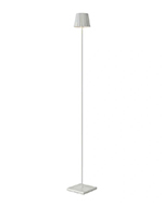 特徴的なプリーツシェードを備えた屋外用フロアランプ。大型充電バッテリーで最大12時間コードレスで使用できます。照明器具のシェードにあるタッチセンサーで連続調光できます。
