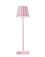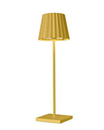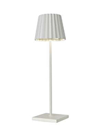 アコーディオンプリーツのシェードが美しいスタイリッシュなLED コードレステーブルライトです。 洗練されたモダンなデザインは、イタリアの著名な照明デザイナーFranco Pagliarini(フランコパリアリーニ)が2019年に手掛けたもので、2024年には国際的に権威のあるドイツのデザイン賞「GermanDesign Award 2024」と「ICONICAWARDS 2024」をダブル受賞しています。本体はアルミ製で、とても軽く簡単に持ち運びすることができます。表面には雨候性のパウダーコーティングが施されていて雨天の屋外でも使えます。上部にあるタッチセンサーでスイッチのオンオフを行い、長押しすることで明るさを100%ー5%まで自在に調節でき、また白色と暖色の2の光色から選ぶことができます。USBType-Aケーブルの充電ステーションを使用して手軽に充電できます。