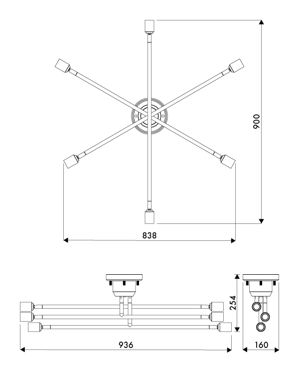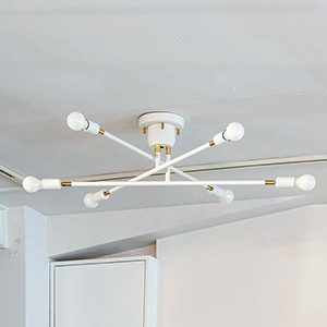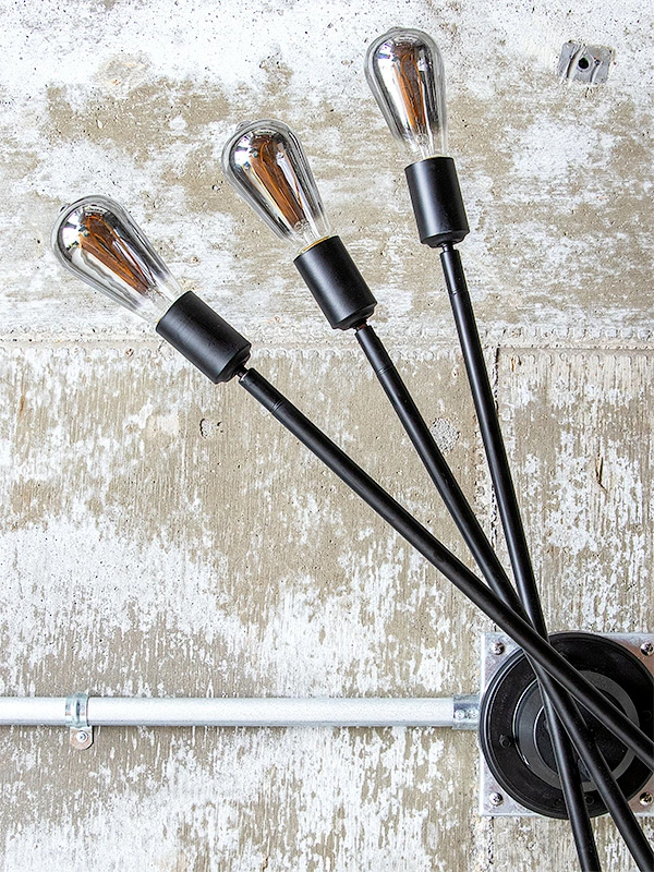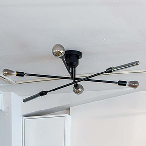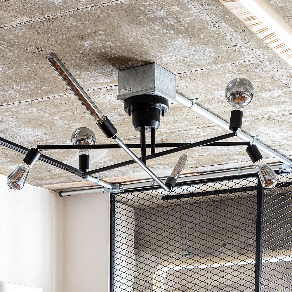 高さの異なる3本のアームが個性的な6灯タイプのシーリングライト。アームを回転することができ、空間や好みに合わせてフォルムを作り出すことができます。アームを広げれば開放的な印象に、寄せれば集中的な明かりに。インテリアのレイアウトに合わせて光の配置を調整したり、気分に応じてデザインを変更したり。まるでアートのような照明をお楽しみいただけます。ソケットの角度も調節できるので、ダイニングテーブルや作業スペースなど、とくに明るさが必要な場所に光を集中させることも可能です。