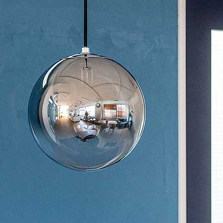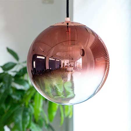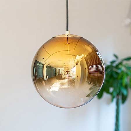 カラーはコッパー、ゴールド、シルバーの3色展開。球体の1/3ほどはクリアなガラスのままで光をしっかり透過させます。メタリックからクリアへのグラデーションが美しいペンダントライトです。 コードの長さは調節可能です。天井からガラスの下までは最長で約105センチ、最短で約50センチとなります。短くしたコードは上部のシーリングカバー内に収納できます。