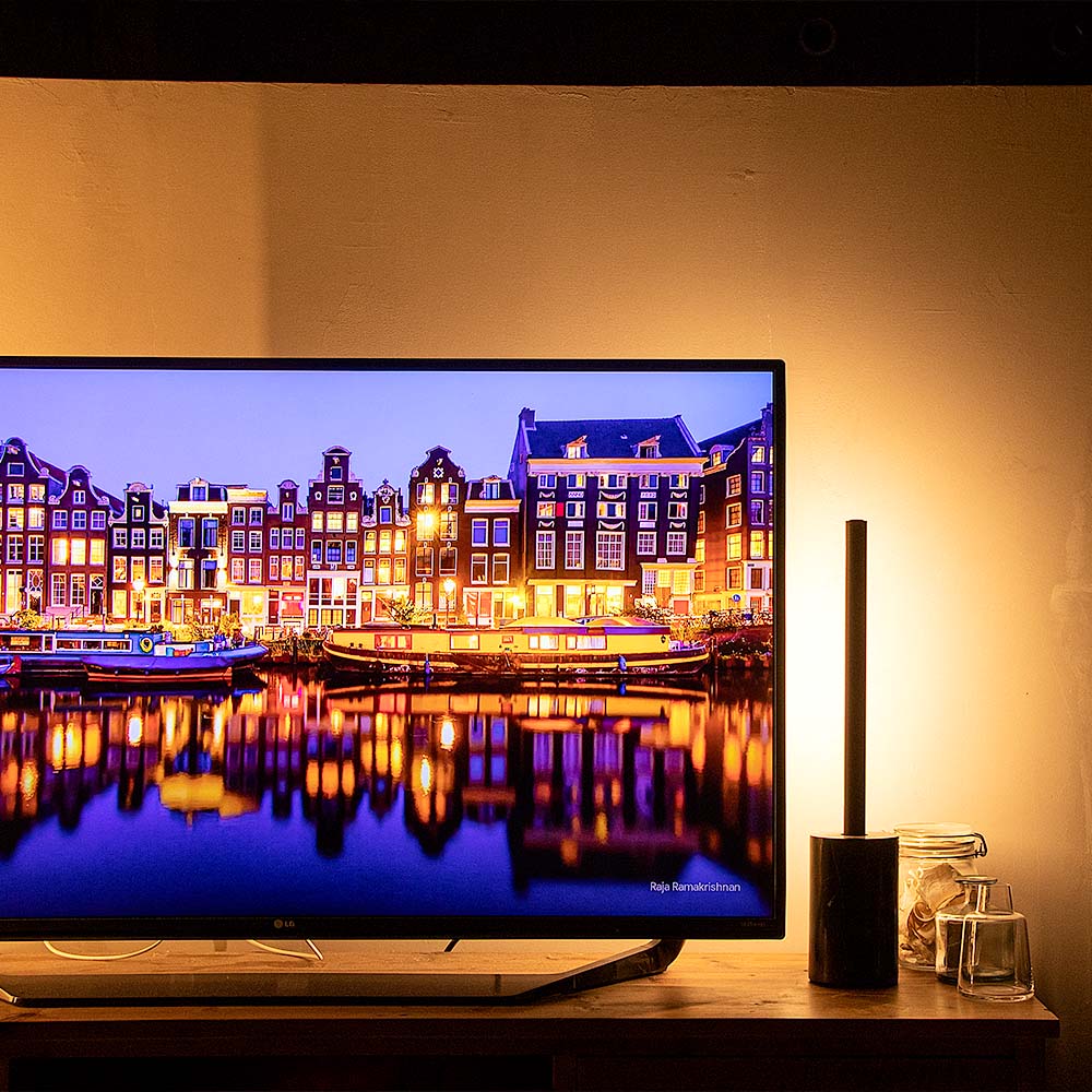 テレビやモニターの両サイドに置けば、それだけでおしゃれな空間に。デスクライトとしても使えます。